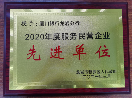 龍巖分行榮獲“2020年度新羅區(qū)服務(wù)民營企業(yè)先進單位”榮譽稱號