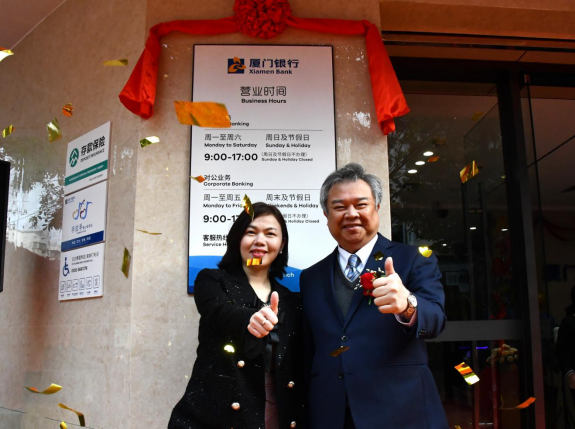 廈門銀行行長吳昕顥,瑞景支行行長謝榮珠共同為廈門銀行瑞景支行揭牌,宣告支行正式對外開業(yè)。