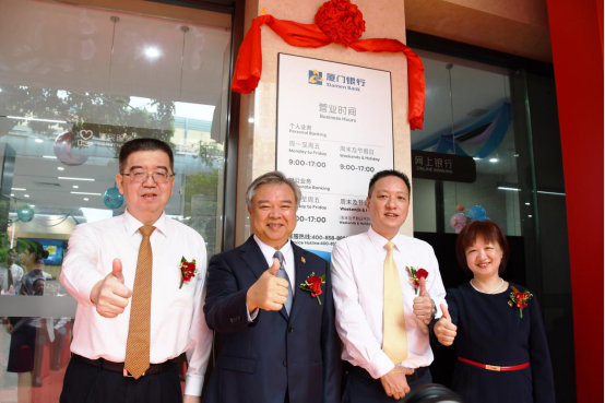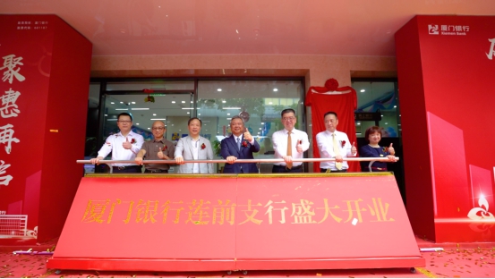 廈門銀行行長吳昕顥、副行長劉永斌、蓮前業(yè)務部總經(jīng)理陳旭輝、蓮前支行行長蔡麗蓉共同為蓮前支行揭牌。