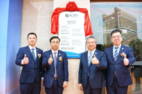 廈門銀行行長吳昕顥,廈門銀行副行長劉永斌,廈門銀行廈門業(yè)務(wù)管理總部開元業(yè)務(wù)部總經(jīng)理黃鑫,廈門銀行開元支行行長吳文成共同為支行揭牌