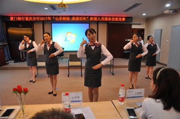 為慶祝廈門銀行重慶分行成立6周年,重慶分行工會委員會聯(lián)合分行營運管理部,圍繞“立足營運 助力營銷”的經(jīng)營理念,于6月10日開展了重慶分行2017年“心手相連 承諾百年”柜面服務技能競賽。分行行領(lǐng)導、各部門負責人,以及營運條線共41名柜面人員參加了本次競賽活動。競賽項目包括業(yè)務技能競賽、營運業(yè)務知識競賽、服務禮儀情景展示。