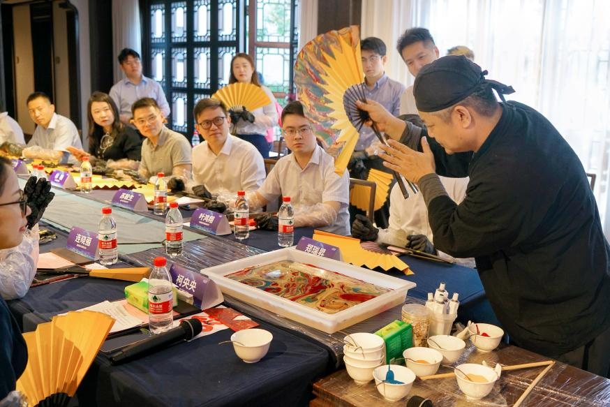 10月13日,20余名閩臺青年相聚福州三寶賓邸,來自臺灣臺中的手藝人黃守堃,帶領在場的青年代表共鑒非遺之美。兩岸金融青年通過大漆工藝品的拼接,共同完成《共創(chuàng)有福兩岸,牽手綠色金融》的漆藝畫卷。參與活動的兩岸青年對話交流,分享各自借助臺商金融產(chǎn)品助力就業(yè)創(chuàng)業(yè)的故事,共“繪”兩岸青年新生活,為兩岸融合發(fā)展貢獻自己的一份力量。