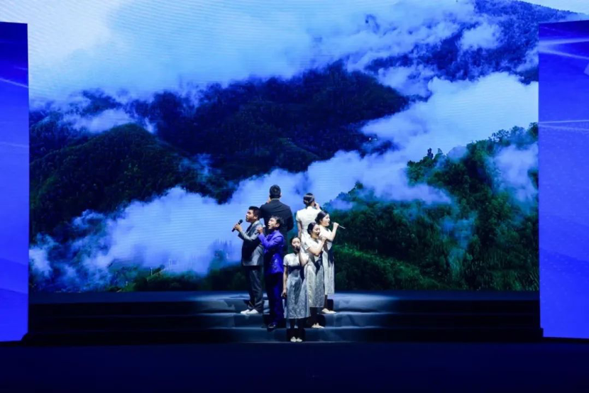 活動現(xiàn)場,合唱團演繹開場歌曲《聽福建》,以純凈的人聲與和諧的旋律,將福建的美麗風(fēng)光和深厚文化底蘊完美地呈現(xiàn)給觀眾,贏得觀眾掌聲連連。動人的旋律和優(yōu)美的歌聲徐徐拉開整場晚會的華美篇章。
