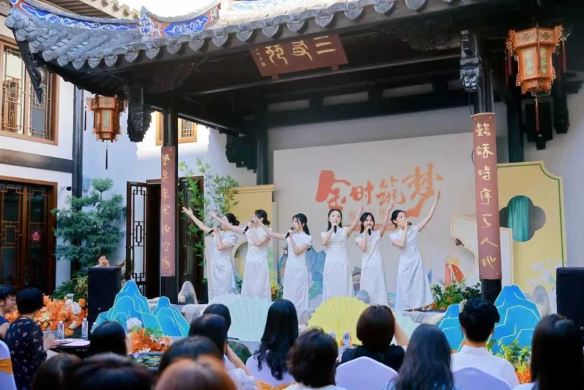 此前,合唱團還應(yīng)邀參加了福建金融工會女工委舉辦“金時筑夢 雅韻芳華”秋日古風(fēng)活動。合唱團與來自多家銀行、各個崗位的女職工們齊聚一堂,身著古風(fēng)盛裝,用優(yōu)美的舞蹈、動聽的歌聲和深情的朗誦,共同展現(xiàn)了中華傳統(tǒng)文化的魅力和韻味。