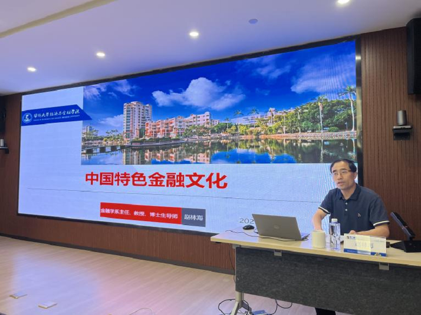 本次講座邀請(qǐng)了華僑大學(xué)經(jīng)濟(jì)與金融學(xué)院金融學(xué)系主任、教授、博士生導(dǎo)師趙林海為大家授課,趙教授圍繞《中國(guó)特色金融文化》主題,闡述了中國(guó)特色金融文化的核心要義與鮮明特點(diǎn)、中國(guó)金融思想的歷史演進(jìn)、中西方金融文化的比較分析,并提出了培育和踐行中國(guó)特色金融文化的實(shí)踐要求。