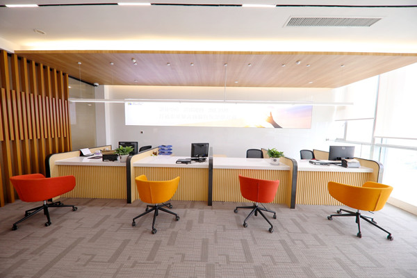 新大樓還首次引入靈活辦公的理念,通過設立無固定工位的“共享辦公區(qū)”,摒棄傳統(tǒng)的隔板,創(chuàng)造凝聚和互動的場景,讓員工之間能夠更自由地討論、交換意見、相互協(xié)作。此外,辦公樓層上加上精心設計的綠植,將綠色低碳、節(jié)能環(huán)保的理念貫穿到分行總部大樓。