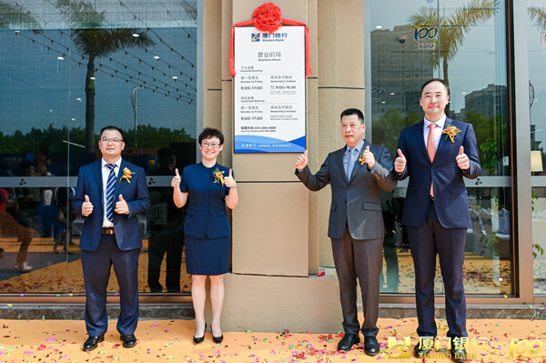 廈門銀行董事長吳世群、黨委書記姚志萍、漳州分行行長于浩、龍海支行行長江志勇共同為龍海支行揭牌。