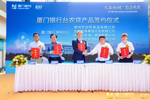 隨后,廈門銀行漳州分行與漳州市臺旺食品有限公司、龍海武林果蔬開發(fā)有限公司、慶農(nóng)(龍海)種苗有限公司、龍海致宏農(nóng)業(yè)科技有限公司共4家臺農(nóng)代表簽署了“臺農(nóng)貸”產(chǎn)品合作意向書,助力臺企臺農(nóng)發(fā)展壯大。