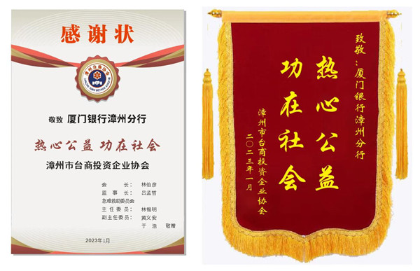 廈門銀行漳州分行的善舉在周邊臺(tái)商中引起積極反響,并得到了漳州市臺(tái)商協(xié)會(huì)的充分肯定,向漳州分行頒發(fā)錦旗及感謝狀。后續(xù)漳州分行將持續(xù)加強(qiáng)與當(dāng)?shù)嘏_(tái)協(xié)的互動(dòng)和交流,時(shí)刻關(guān)注臺(tái)商臺(tái)胞需求,優(yōu)化提升對(duì)臺(tái)服務(wù)水平,強(qiáng)化對(duì)臺(tái)特色業(yè)務(wù)建設(shè),為在漳臺(tái)企臺(tái)胞提供更為優(yōu)質(zhì)、便利、高效的金融服務(wù)和支持。