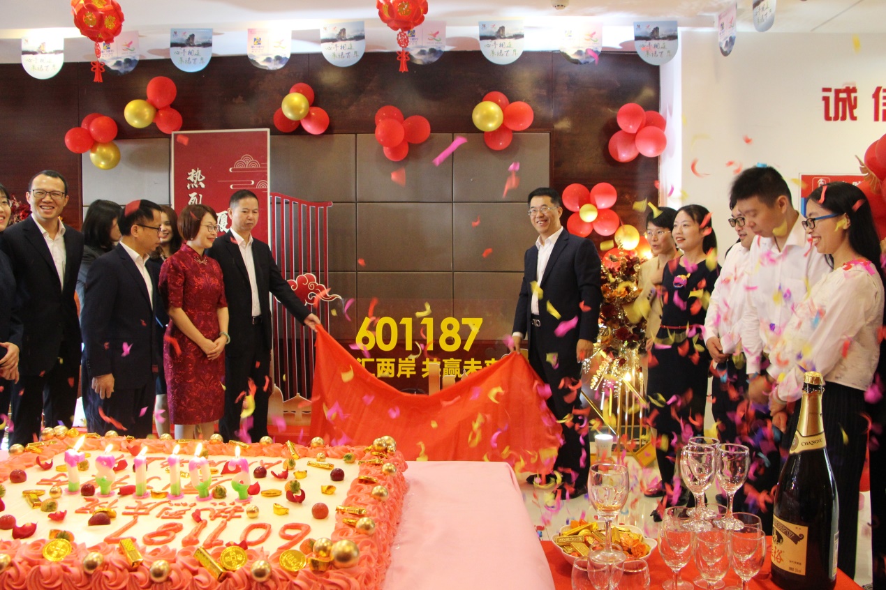 27日當(dāng)天,南平分行在分行辦公場(chǎng)所、分行營(yíng)業(yè)部、各支行同步舉辦上市慶典活動(dòng),分行行領(lǐng)導(dǎo)、支行受邀客戶(hù)為上市宣傳堆頭主題文字揭幕?,F(xiàn)場(chǎng),分行員工及客戶(hù)同食慶典蛋糕、開(kāi)香檳慶祝我行上市,并拍照留念,氣氛活躍。