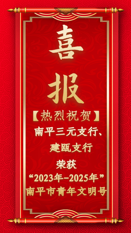 熱烈祝賀南平建甌支行、三元支行榮獲“2023-2025年 南平市青年文明號”