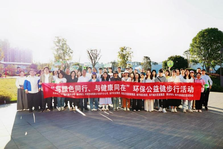 11月6日,由廈門銀行南平分行主辦,中國移動福建公司南平分公司、南平實業(yè)集團、福建武夷旅游集團、南平綠發(fā)集團、南平城市發(fā)展集團共同協(xié)辦,南平市環(huán)保志愿者協(xié)會承辦的“與綠色同行、與健康同在”公益環(huán)保健步行活動在南平崇陽溪漫游道開展。