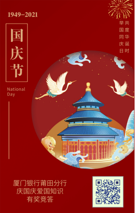 廈門銀行莆田分行開展“慶國慶愛國知識有獎競答”線上活動