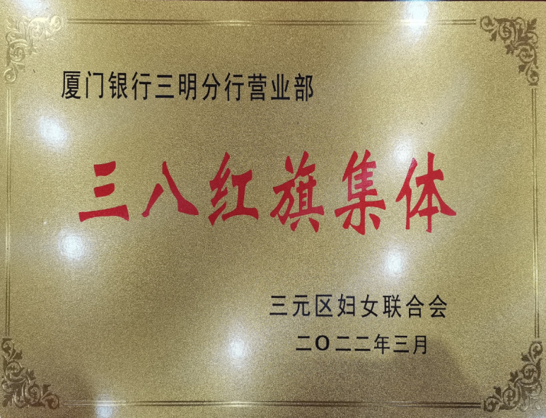 3月8日,在三元區(qū)婦聯(lián)主辦的“跟黨奮進(jìn)新征程 巾幗建功新時(shí)代”慶?!叭恕眹H婦女節(jié)112周年紀(jì)念表揚(yáng)大會上,三明分行營業(yè)部被授予區(qū)級“三八紅旗集體”榮譽(yù)稱號。