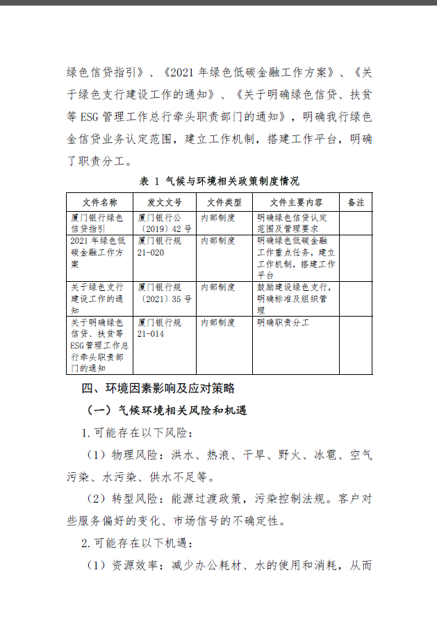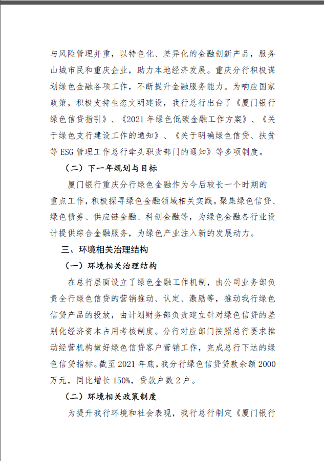 廈門銀行股份有限公司重慶分行2021年度氣候與環(huán)境信息披露報告