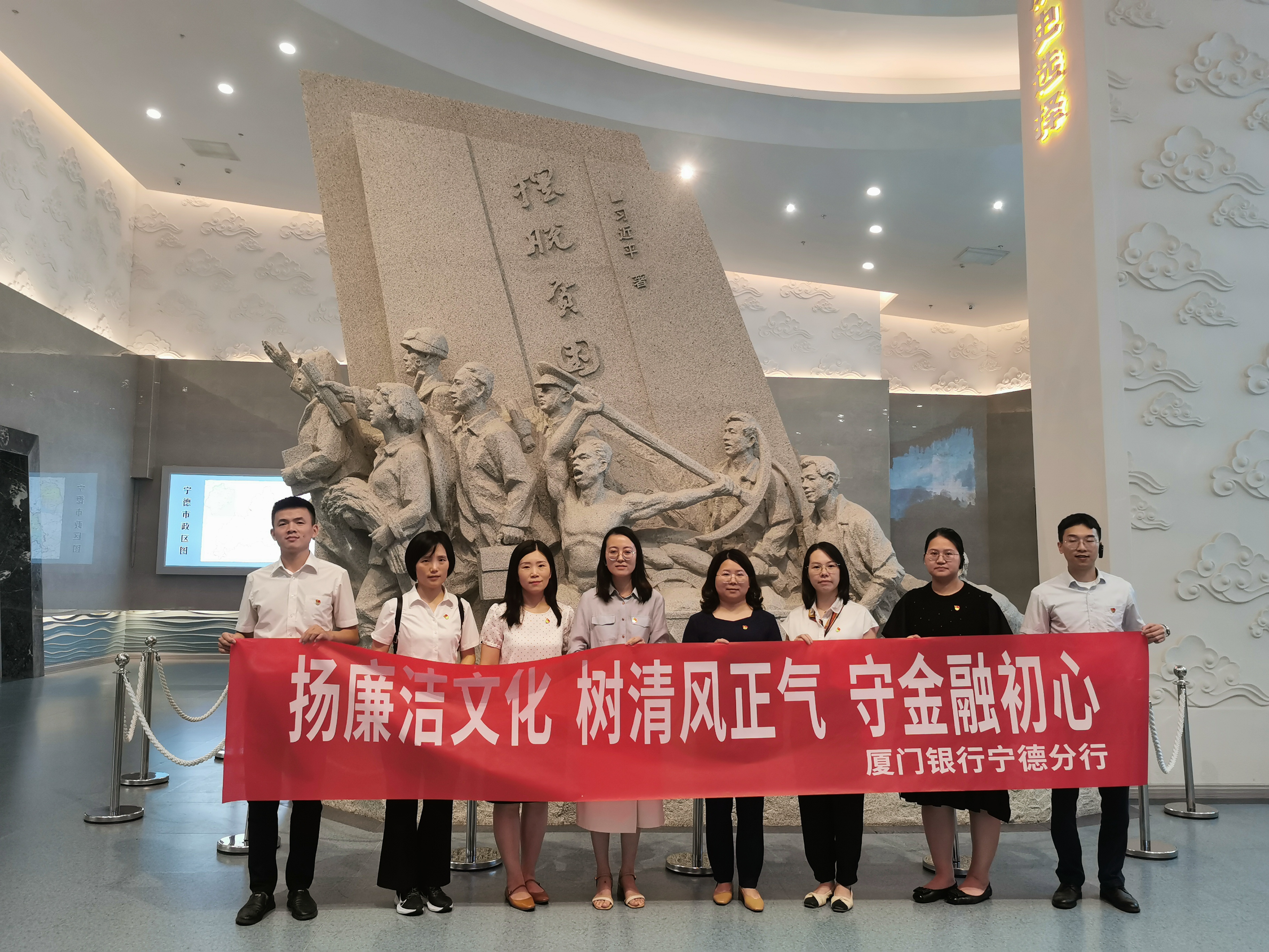 廈門銀行寧德分行與華福證券組織黨員干部一同前往寧德扶貧展示館參觀學(xué)習(xí),感受多年來寧德發(fā)揚(yáng)“弱鳥先飛、滴水穿石”的閩東精神,大家認(rèn)真聆聽講解、共同討論寧德變化。