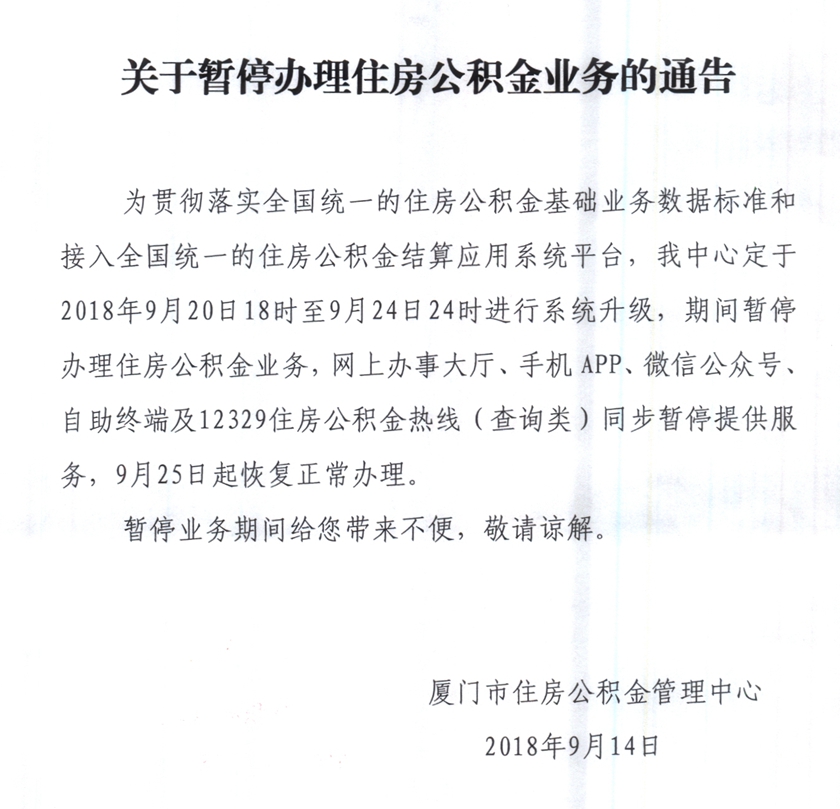 關(guān)于暫停辦理住房公積金業(yè)務(wù)的公告