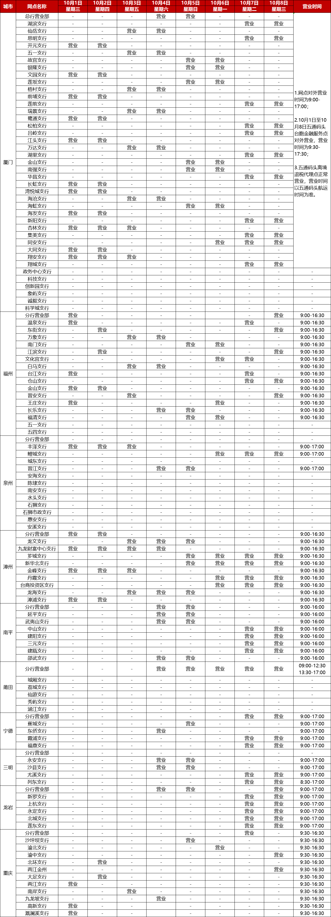 廈門(mén)銀行2025年國(guó)慶中秋節(jié)假期網(wǎng)點(diǎn)對(duì)外營(yíng)業(yè)時(shí)間通告
