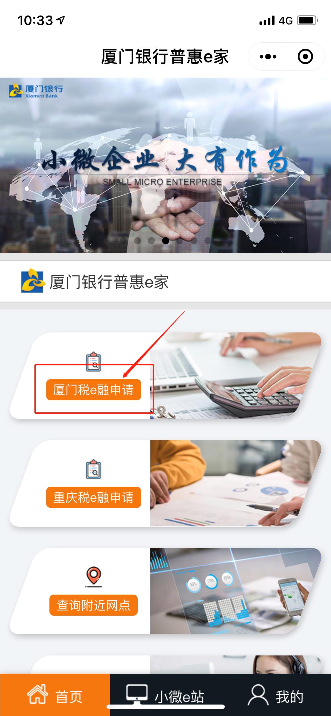 打開【廈門銀行普惠e家】小程序,