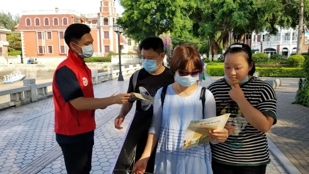 2020年7月14日,由廈門銀行臺(tái)籍員工志愿者組成的廈門兩岸金融聯(lián)合志愿服務(wù)隊(duì)來(lái)到了鼓浪嶼風(fēng)景名勝區(qū)進(jìn)行文明旅游宣導(dǎo),引導(dǎo)來(lái)廈旅游的游客文明旅游、文明觀光,嚴(yán)守疫情防控舉措。志愿者們不畏辛勞,頂著炎炎烈日,向往來(lái)游客發(fā)放及宣傳“文明旅游公約”,同時(shí)對(duì)不文明的行為進(jìn)行勸導(dǎo)。