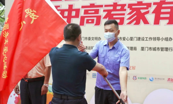 廈門銀行的志愿者們也來到了活動現(xiàn)場,后續(xù)他們將在各區(qū)部分高考考場駐點,為考生提供相關(guān)公益服務(wù)。