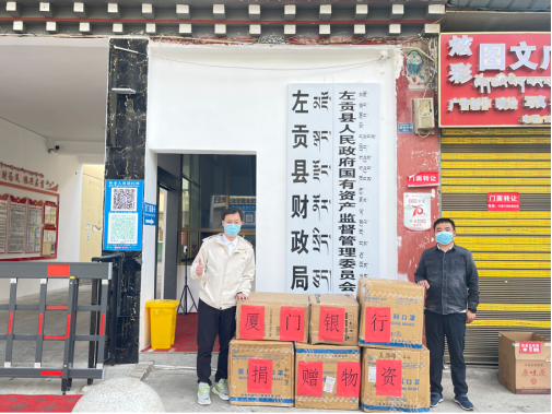 西藏左貢縣是廈門的對口幫扶城市,廈門長期派出援藏干部在左貢縣掛職,廈左人民的深情早已跨越山海,藏區(qū)疫情也牽動著廈門人民的心。援藏干部用奉獻和堅守筑牢疫情防控的堡壘,為奪取疫情防控全面勝利貢獻廈門援藏力量。藏區(qū)疫情爆發(fā)后,廈門銀行第一時間向廈門市財政局派駐左貢縣財政局的援藏干部劉滄瀧同志送去關(guān)心慰問,在得知藏區(qū)抗疫物資短缺、物流運輸困難情況后,湖里支行爭分奪秒,積極協(xié)調(diào)川藏線物流公司,在第一時間將口罩、防護服和測溫槍等防疫物資送到藏區(qū),助力左貢縣有效抗擊疫情。