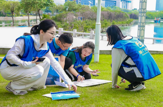 本次筼筜湖畔趣味生態(tài)跑圍繞筼筜湖畔設(shè)置關(guān)卡,通過手速拼圖、團(tuán)隊打卡、尋寶答題等趣味環(huán)節(jié),關(guān)聯(lián)生態(tài)實踐與綠色知識普及。通過團(tuán)隊的通力協(xié)作,進(jìn)一步加深總分機(jī)構(gòu)團(tuán)干之間的交流和互動,展現(xiàn)團(tuán)干們的青春活力。