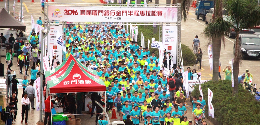 2016年11月20日,由廈門(mén)銀行主辦的首屆廈門(mén)銀行金門(mén)半程馬拉松賽在金門(mén)成功落下帷幕,共有500多名大陸選手、100多名金門(mén)本地跑步發(fā)燒友參與,金門(mén)縣府秘書(shū)長(zhǎng)林德恭、觀光處處長(zhǎng)陳美齡以及廈門(mén)銀行洪主民行長(zhǎng)、李朝暉副行長(zhǎng)、陳蓉蓉董秘、劉永斌行長(zhǎng)助理等行領(lǐng)導(dǎo)到場(chǎng)為比賽鳴槍開(kāi)賽。