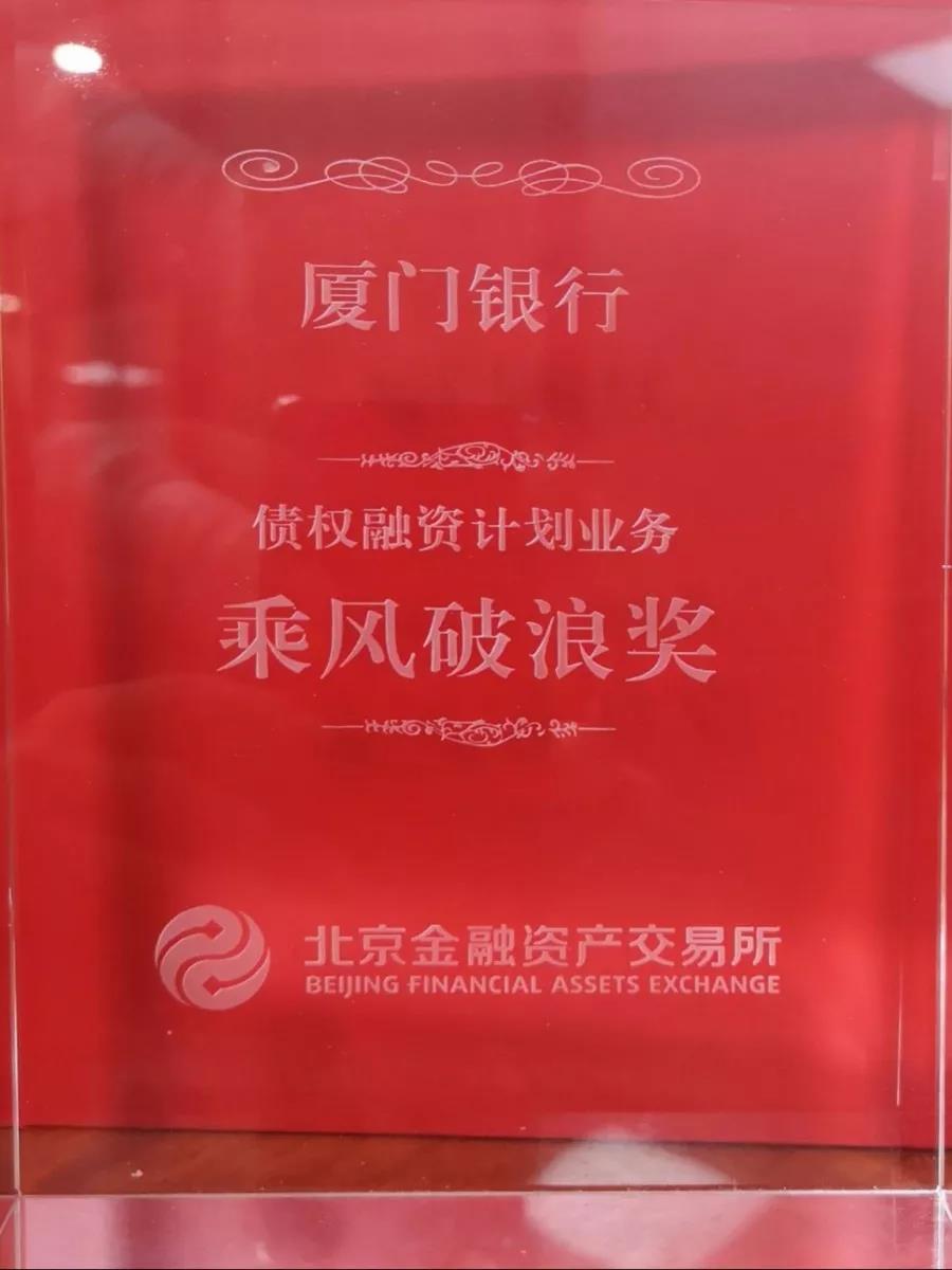 廈門銀行榮獲北金所債權(quán)融資計(jì)劃業(yè)務(wù)“乘風(fēng)破浪獎(jiǎng)”