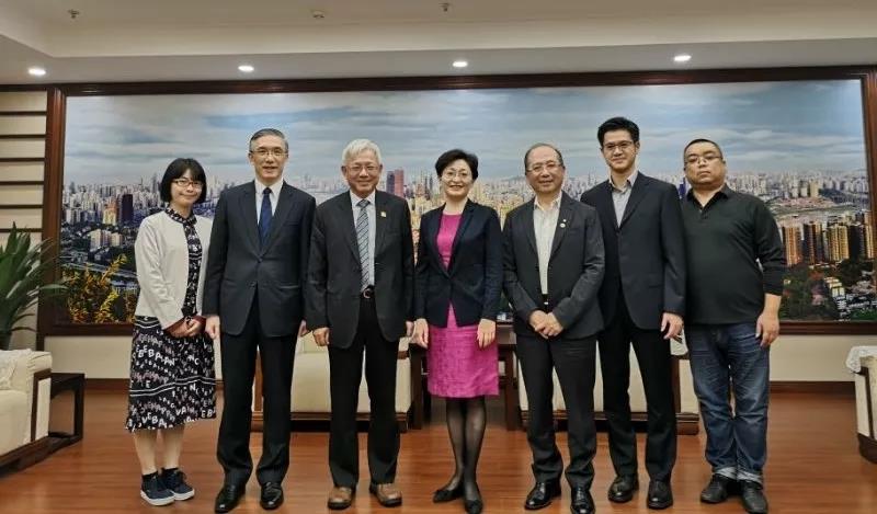 ▲重慶市委臺辦主任胡奕(中)與活動主辦方及演講嘉賓合影