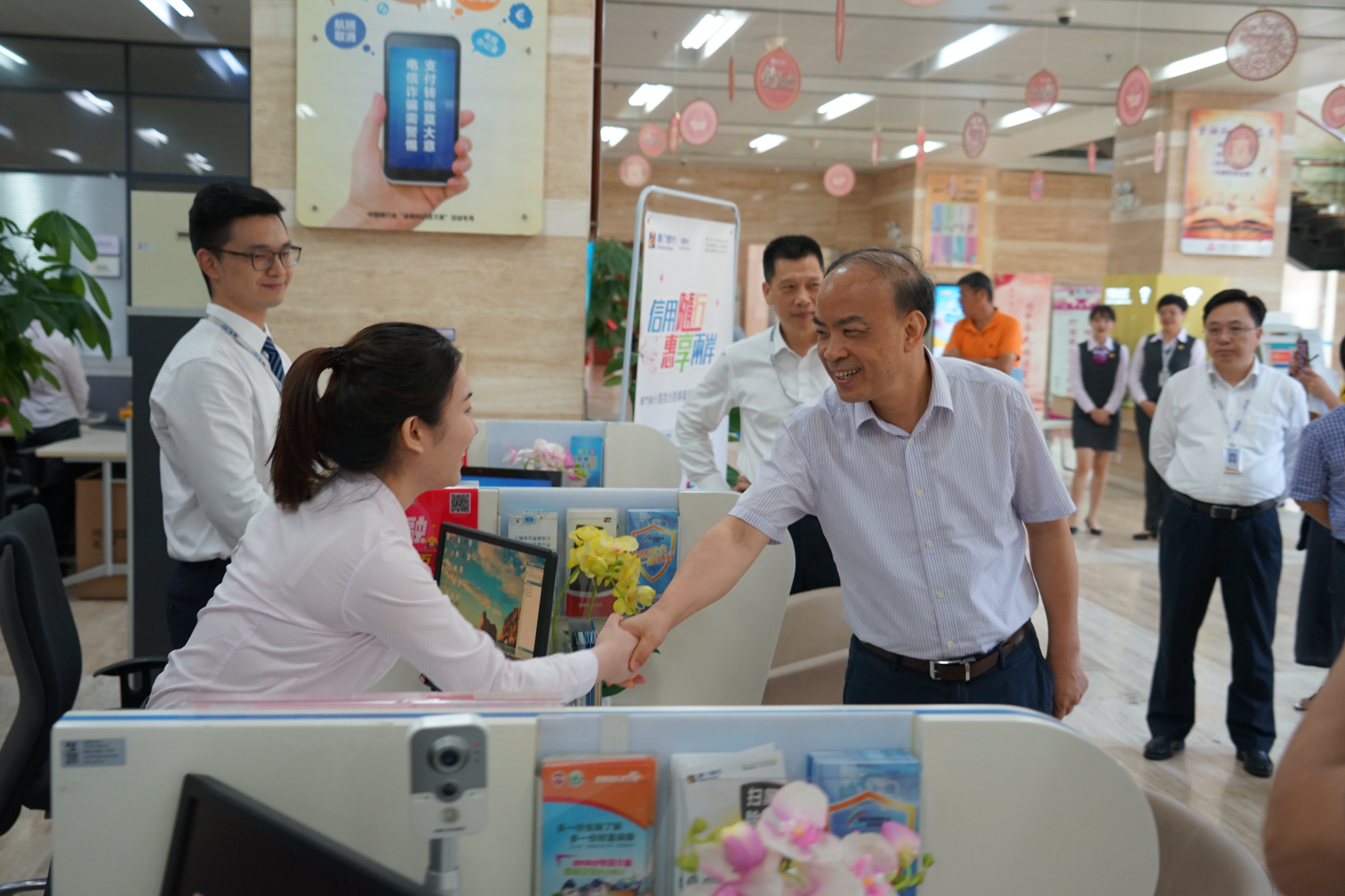在總行營業(yè)部,黃副市長一行參觀了廈門銀行“手拉手”愛心服務(wù)站,對企業(yè)積極履行社會責(zé)任表示肯定。他點贊“手拉手”愛心服務(wù)站給戶外勞動者帶來便利,同時改變了人們對于銀行只能辦理金融業(yè)務(wù)的傳統(tǒng)印象,是個非常好的便民服務(wù)項目。