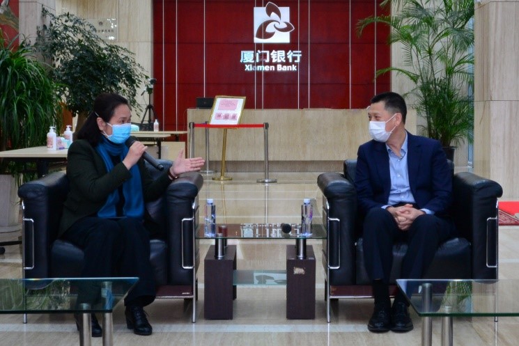 王主任還特別關(guān)注了臺(tái)胞臺(tái)企受疫情影響的情況。在了解到我行通過(guò)專門為臺(tái)胞臺(tái)企客戶提供的線上服務(wù)、臺(tái)商綠色通道等措施后,她表示,廈門銀行能與臺(tái)胞臺(tái)企、中小企業(yè)共渡疫情難關(guān),堅(jiān)持做好金融服務(wù)的行動(dòng)予以肯定,切實(shí)做到了不忘初心、不改本色,充分發(fā)揮了對(duì)臺(tái)特色。