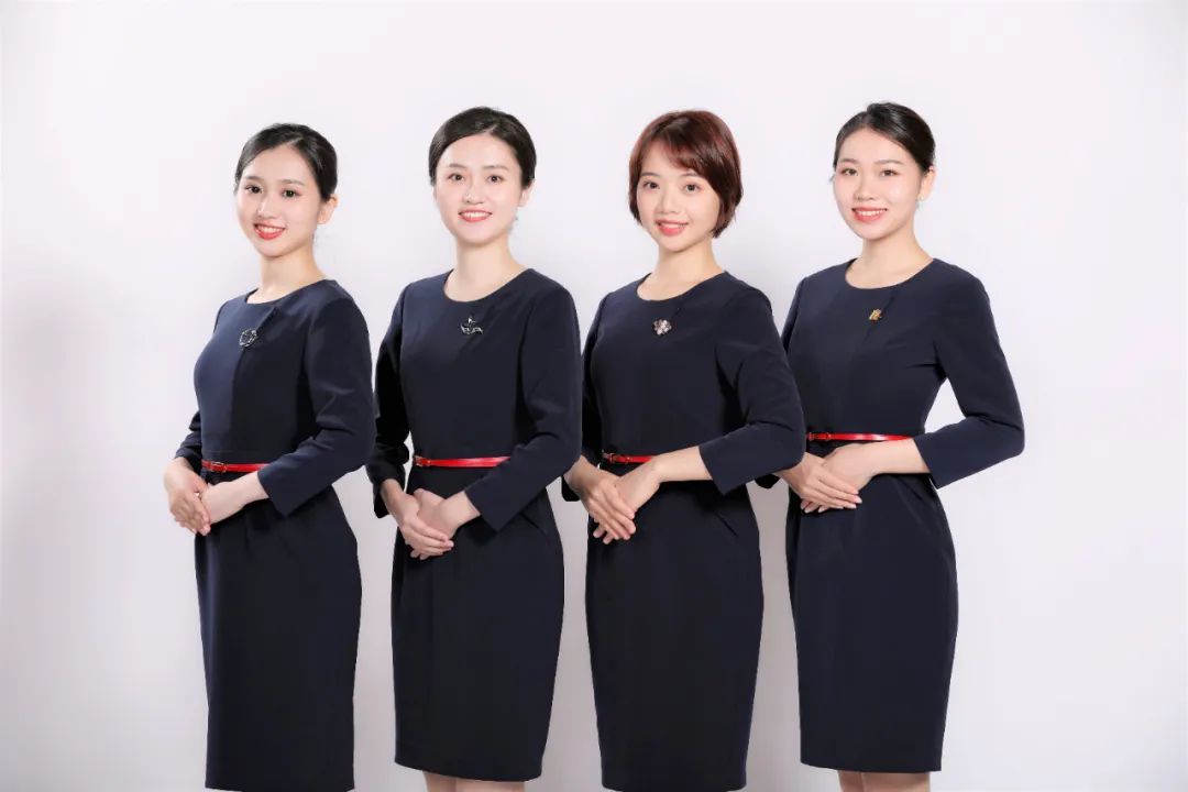 由于時(shí)常需要伏身與客戶對(duì)話,衣領(lǐng)的設(shè)計(jì)是否貼身對(duì)女性員工來說至關(guān)重要。連衣裙的圓領(lǐng),套裝的立領(lǐng),均考慮到了女裝貼合身材的需求,讓服務(wù)時(shí)的舉止更顯優(yōu)雅從容。