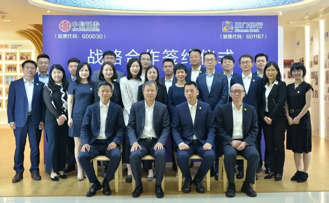 6月23日,廈門銀行與中信證券續(xù)簽戰(zhàn)略合作協(xié)議,進一步深化合作。中信證券黨委書記、董事長張佑君,中信證券高管、全球投資銀行管理委員會副主任孫毅;廈門銀行黨委書記、董事長吳世群,副行長莊海波等領(lǐng)導(dǎo)及相關(guān)負責(zé)人出席簽約儀式。