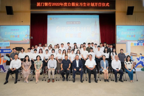 2022年7月13日,廈門銀行2022年度臺灣高校青年實習(xí)計劃拉開帷幕,54名來自全國各大高校的臺籍學(xué)生共聚廈門銀行,參加“開營儀式”。兩岸企業(yè)家峰會金融組辦公室田磊副主任、蔡榮俊副主任,共青團廈門市委統(tǒng)戰(zhàn)部林曦部長,廈門大學(xué)臺港澳事務(wù)辦公室蔡舜主任,廈門銀保監(jiān)局外資處黃靜處長等領(lǐng)導(dǎo)到場指導(dǎo)。
