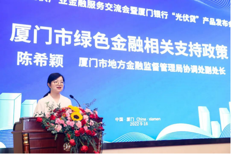 廈門市地方金融監(jiān)督管理局協(xié)調處副處長陳希穎介紹了廈門市綠色金融相關支持政策。