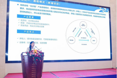 福建海西金融租賃有限責任公司陳華麗介紹了“光伏租”產(chǎn)品。