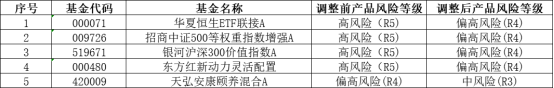根據(jù)《證券期貨投資者適當(dāng)性管理辦法(2022年修正)》(中國證券監(jiān)督管理委員會令第202號)、《基金募集機(jī)構(gòu)投資者適當(dāng)性管理實施指引(試行)》(中基協(xié)發(fā)〔2017〕4號)等規(guī)定要求,為切實履行適當(dāng)性義務(wù),保護(hù)投資者的合法權(quán)益,我行參考第三方評級機(jī)構(gòu)及同業(yè)評級,并結(jié)合產(chǎn)品類型、風(fēng)險收益特征,于2025年5月26日調(diào)整了部分代銷公募基金產(chǎn)品的風(fēng)險等級,調(diào)整后客戶風(fēng)險承受能力評估等級可能存在與產(chǎn)品風(fēng)險等級不匹配的情況,請您及時關(guān)注。