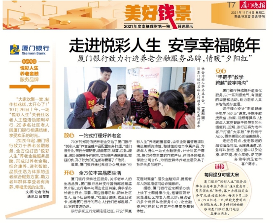 廈門銀行致力打造養(yǎng)老金融服務(wù)品牌,情暖“夕陽紅”