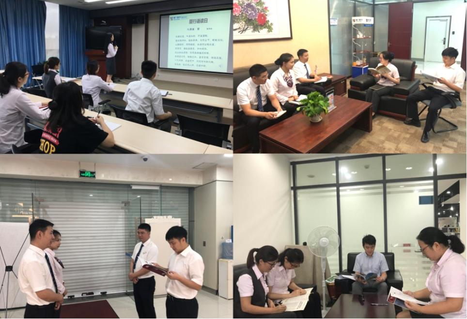 轄內(nèi)各機(jī)構(gòu)積極響應(yīng)號召,在晨會時(shí)開展誦讀活動,用朗朗誦讀聲把山城喚醒,用文字的力量,開啟一天的工作。此外,分行提倡讓會議前誦讀成為常態(tài)化,在所有會議中,參會人員須至少提前5分鐘到場誦讀,以誦讀經(jīng)典打開思想,拉開會議帷幕,把文學(xué)經(jīng)典的神韻融進(jìn)工作。同時(shí),分行各部門分別開展了誦讀分享會,組織員工集體誦讀,鼓勵員工積極閱讀并分享讀后感,為其他員工推薦好書,把一篇篇文學(xué)經(jīng)典刻進(jìn)心中。本著“傳承文學(xué)經(jīng)典,培養(yǎng)誦讀習(xí)慣”的理念,分行員工自發(fā)開展了“親子齊誦讀”活動,讓“廈行誦讀日”走進(jìn)員工家庭,走進(jìn)員工生活。