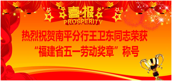 熱烈祝賀南平分行王衛(wèi)東同志榮獲“福建省五一勞動獎?wù)隆狈Q號