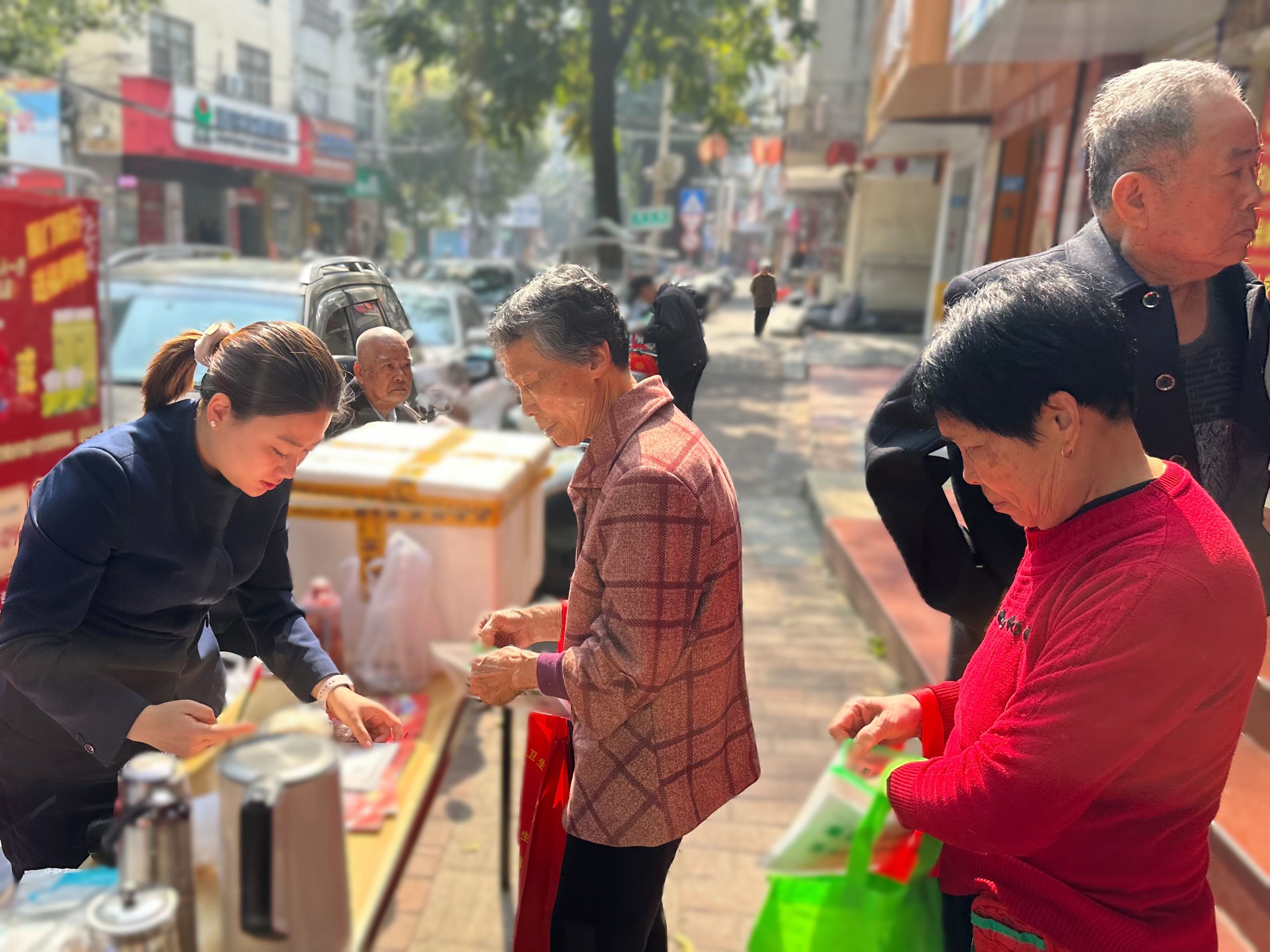 活動(dòng)當(dāng)天,最受居民歡迎的莫過于“健康體檢送溫情”環(huán)節(jié)。支行聯(lián)合社區(qū)醫(yī)院為居民提供免費(fèi)血壓、血糖檢測(cè)和健康咨詢,考慮到許多老年居民早起排隊(duì)參與社區(qū)體檢,支行特別準(zhǔn)備了剛出爐的熱早餐。