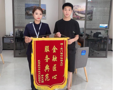 為表達誠摯謝意,客戶特意定制一面錦旗贈予仙游支行,錦旗上“金融匠心 服務(wù)典范”八個字,不僅是對仙游支行員工專業(yè)素養(yǎng)與敬業(yè)精神的認可,更是激勵著全體員工在今后繼續(xù)秉持服務(wù)初心,為客戶提供更貼心、更優(yōu)質(zhì)的金融服務(wù)。