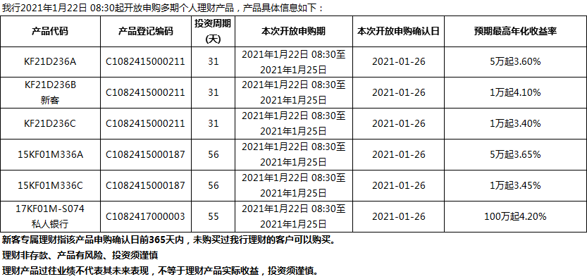 “鳳凰花”理財產(chǎn)品2021年1月22日發(fā)售信息