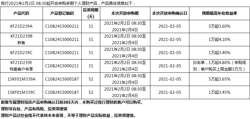 “鳳凰花”理財(cái)產(chǎn)品2021年2月2日發(fā)售信息