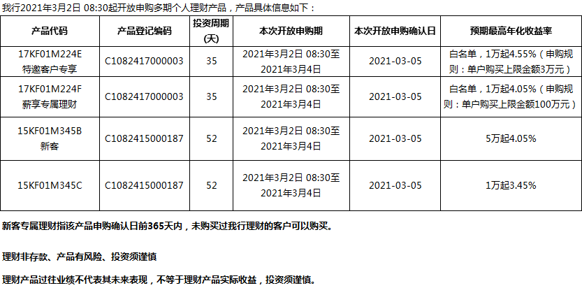 “鳳凰花”理財(cái)產(chǎn)品2021年3月2日發(fā)售信息