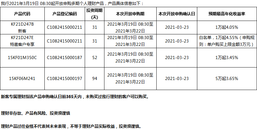 “鳳凰花”理財(cái)產(chǎn)品2021年3月19日發(fā)售信息