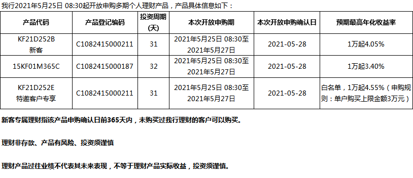 “鳳凰花”理財產(chǎn)品2021年5月25日發(fā)售信息