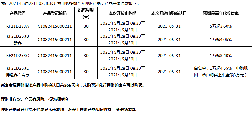 “鳳凰花”理財(cái)產(chǎn)品2021年5月28日發(fā)售信息