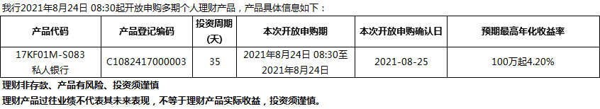 “鳳凰花”理財(cái)產(chǎn)品2021年8月24日發(fā)售信息